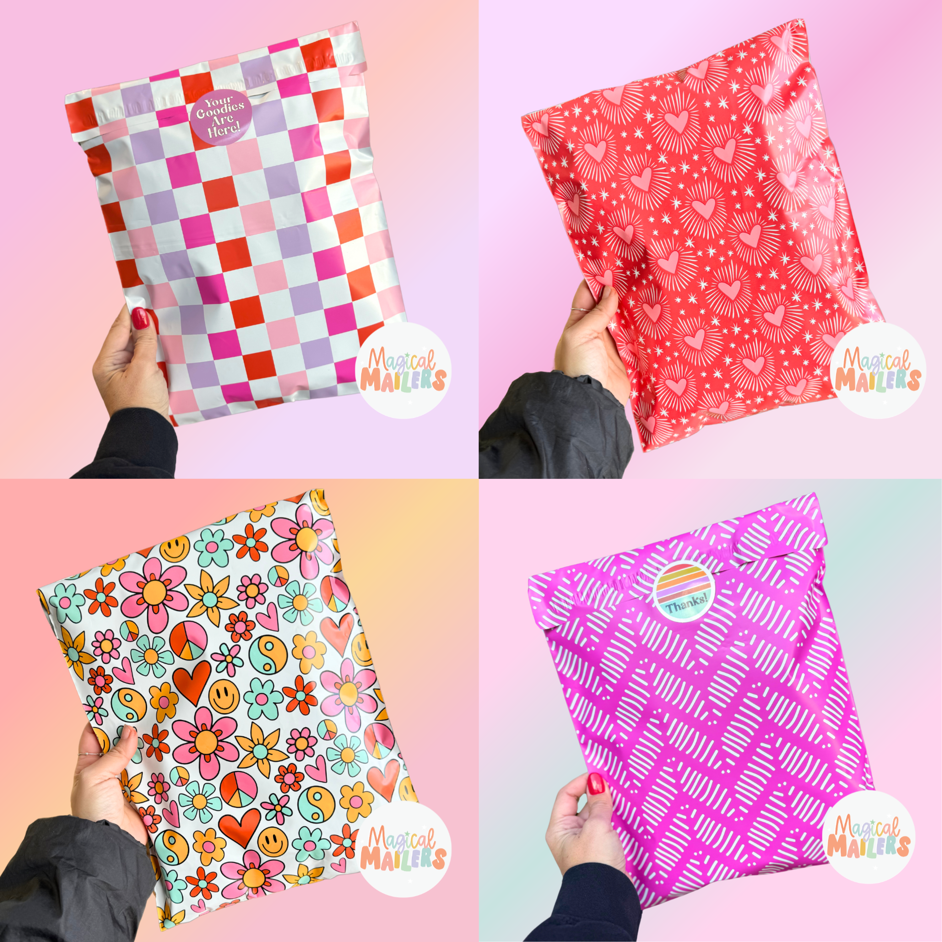• Durability: Magical Mailers un-padded poly mailers are thicker than your average poly mailer! Our premium poly mailers are made of a water resistant, puncture resistant 3.15mil thick film. No more wrinkled up poly mailers arriving at your customers doors! Our strong self-adhesive strips make packing and sealing your mailers a breeze and boast a metallized film to ensure the adhesive keeps it's properties over time.